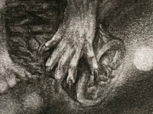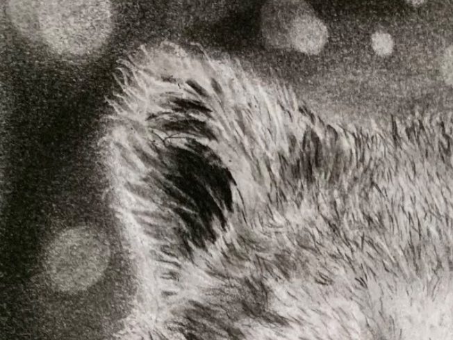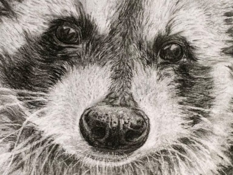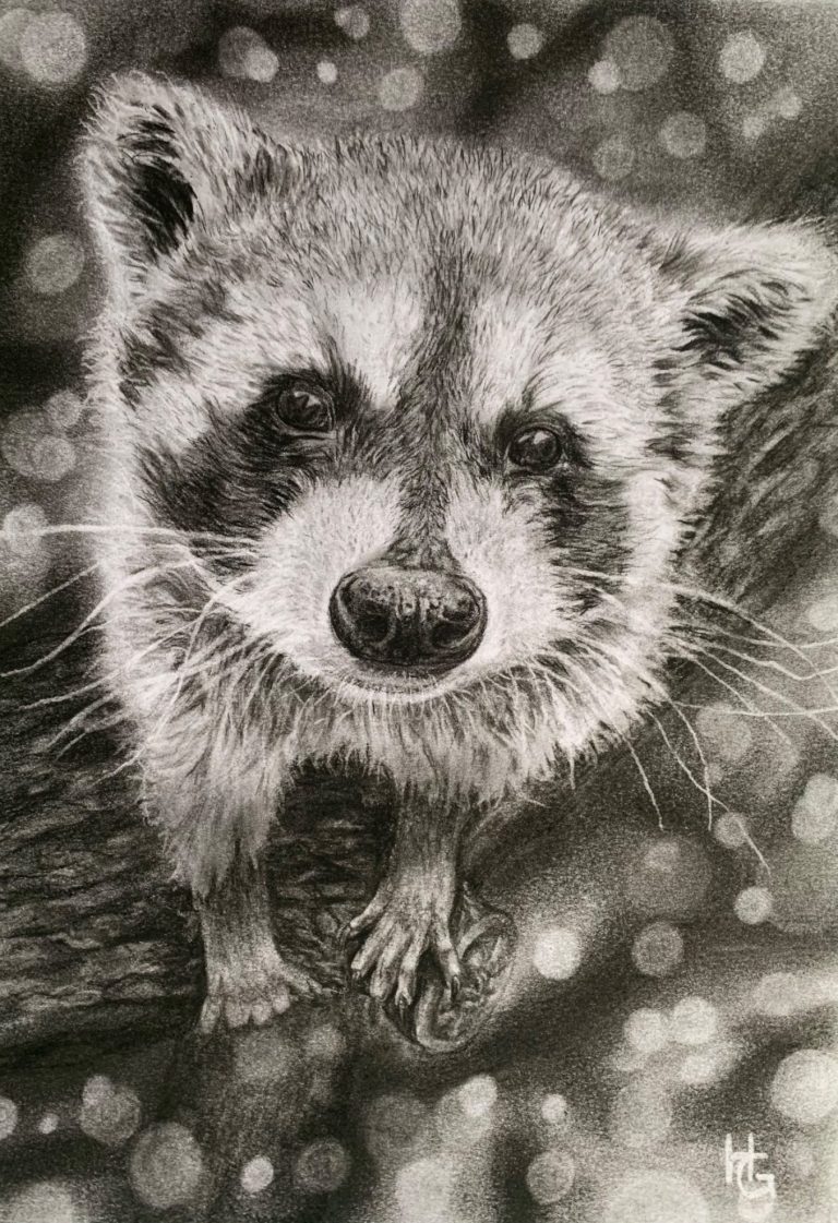 This charcoal painting captures a moment of alert curiosity: a raccoon meeting the viewer’s gaze with a bold, inquisitive expression. It was created as a Christmas gift for my brother-in-law, whose love for squirrels inspired this piece.